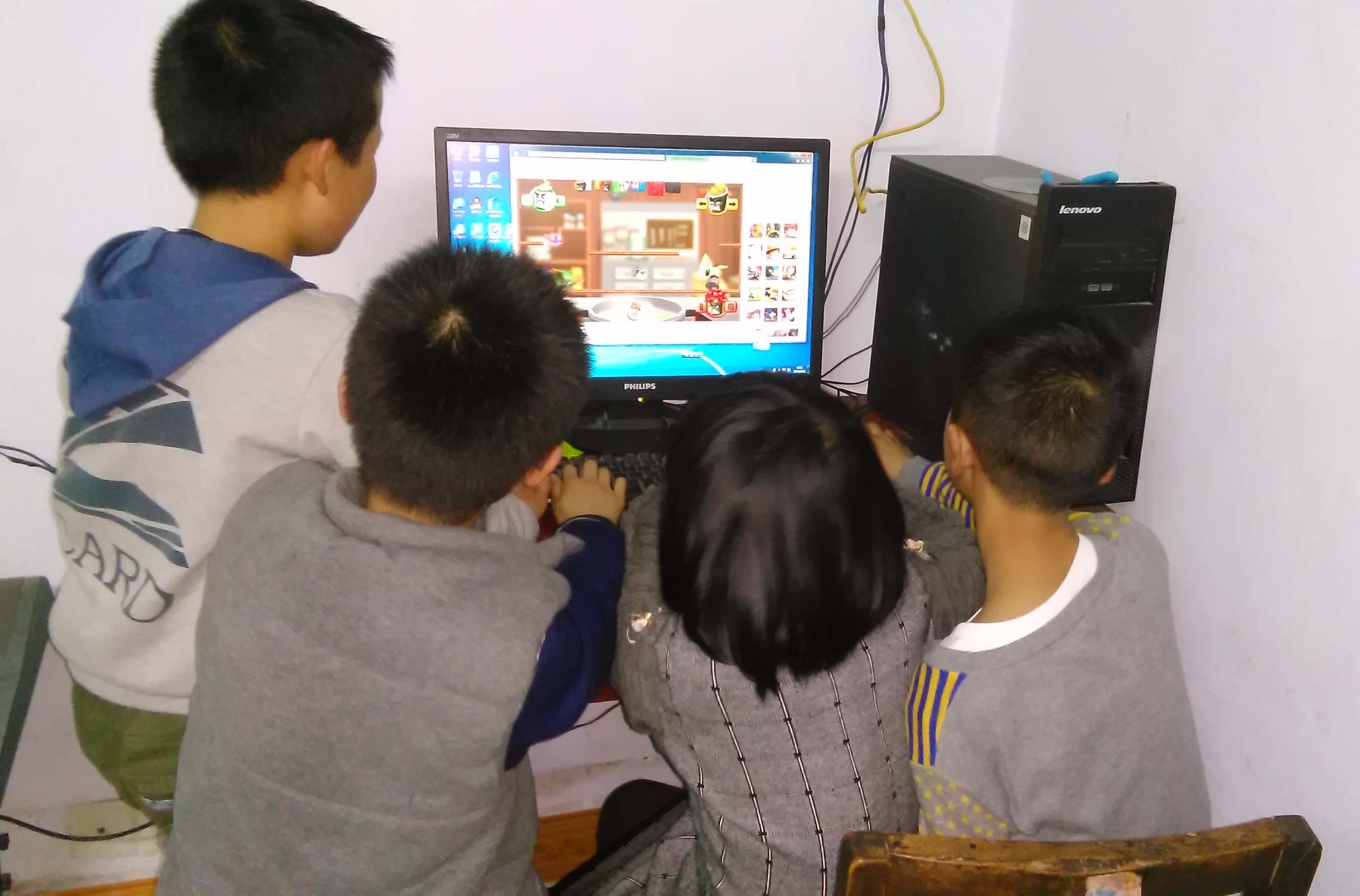 Look at this photo! It's me and my friends. The first one on the left is my cousin. He is 12 years old. He likes playing games very much. The second is my friend, but he likes watching TV very much. The girl in the middle is my friend. She's in grade 4. I was in the last one, I also like to play games, but my eyes are not short-sighted.